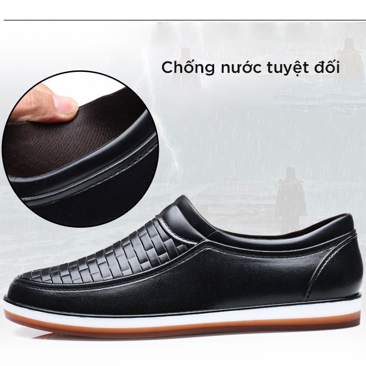 Giày Mọi Nam đi mưa, chống nước và không nhàu phong cách giày lười nam đơn giản bền theo thời gian