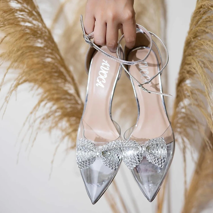 Giày mũi nhọn nơ bạc cô dâu gót 9cm cực đáng yêu cho các nàng ( giao hỏa tốc - free shipping - bảo hành 1 năm)