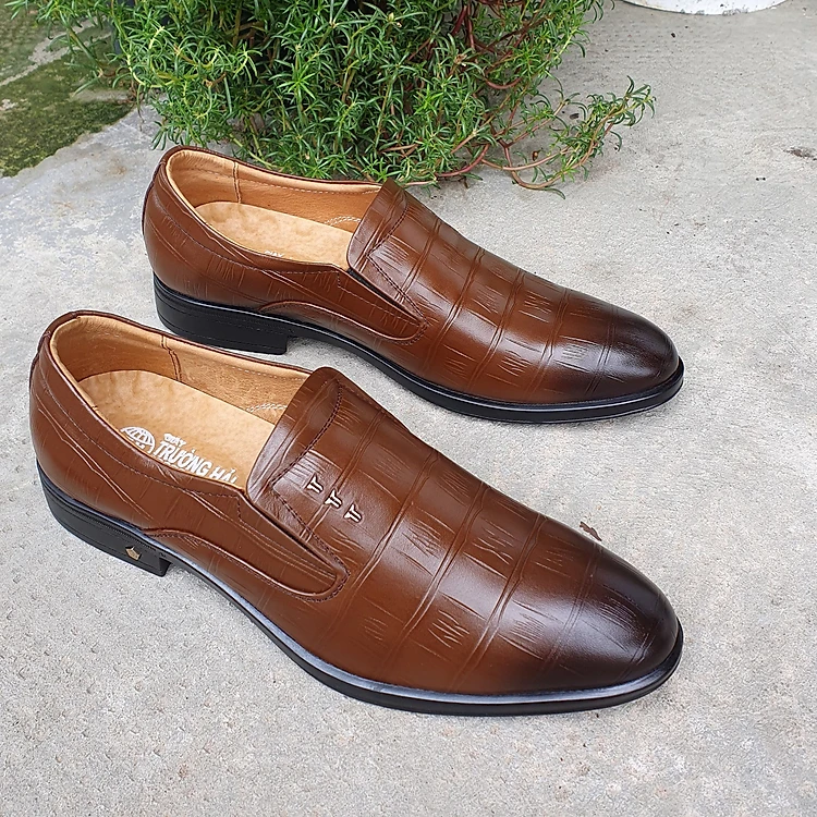 Giày nam công sở không dây Trường Hài mũi nhọn 2 màu đen,nâu GT338Đ