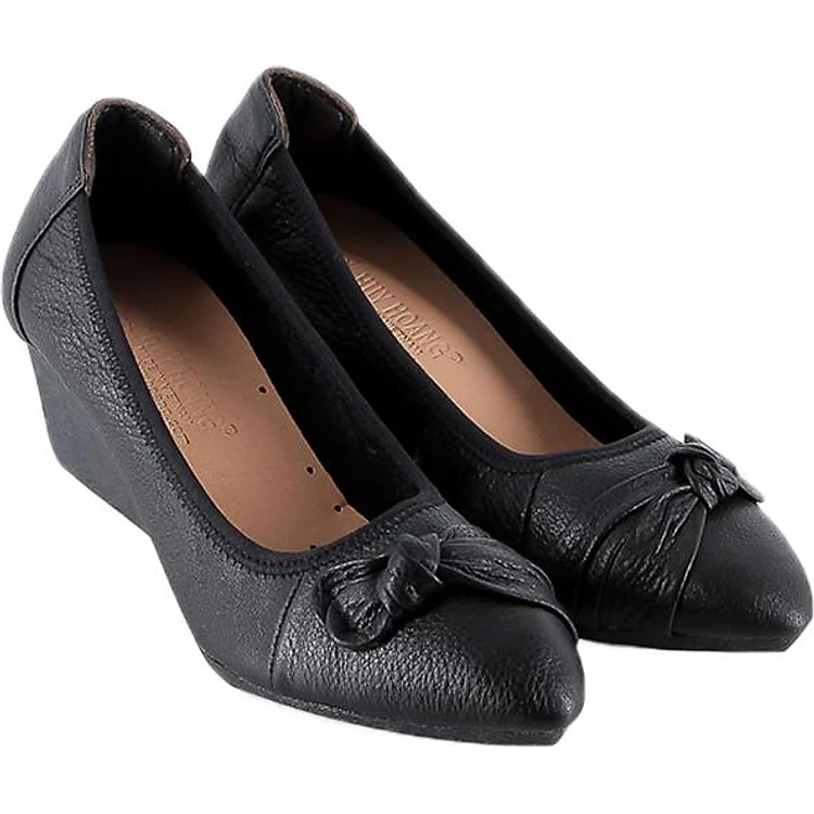 Giày Nữ Da Bò 5 Phân Huy Hoàng HT7942 - Đen
