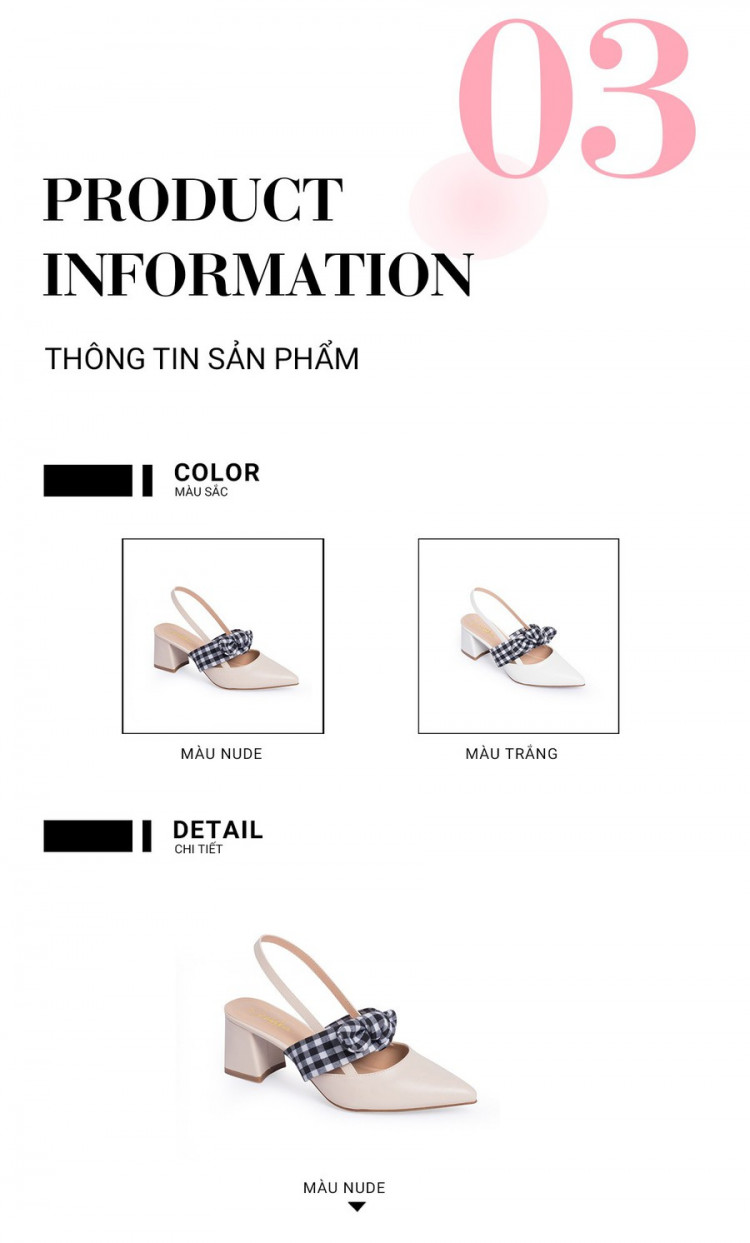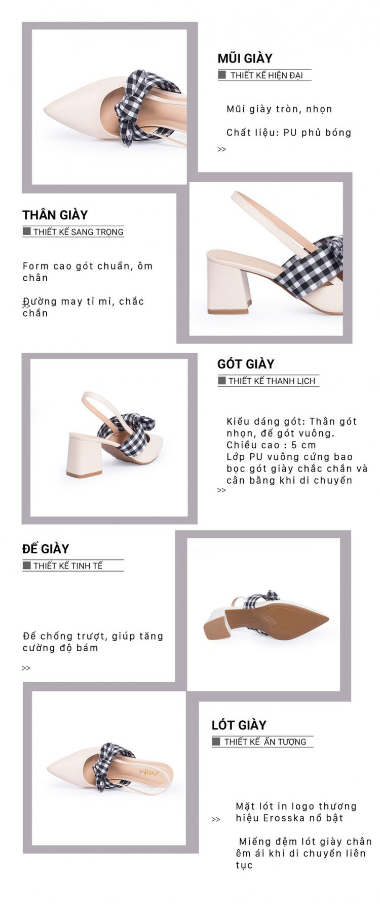 Giày Nữ, Giày Cao Gót Slingback Phối Nơ Hở Gót Cao 5cm Erosska _ EH028 (Màu Nude)