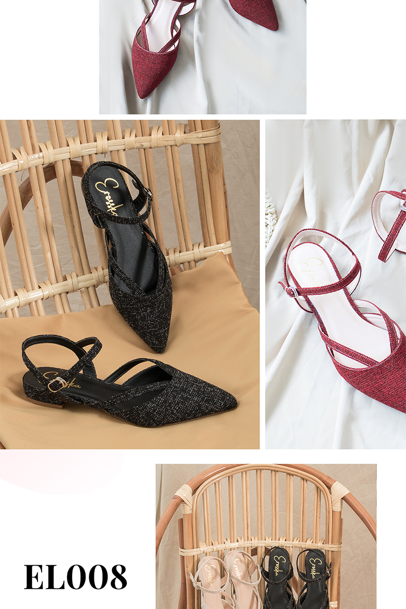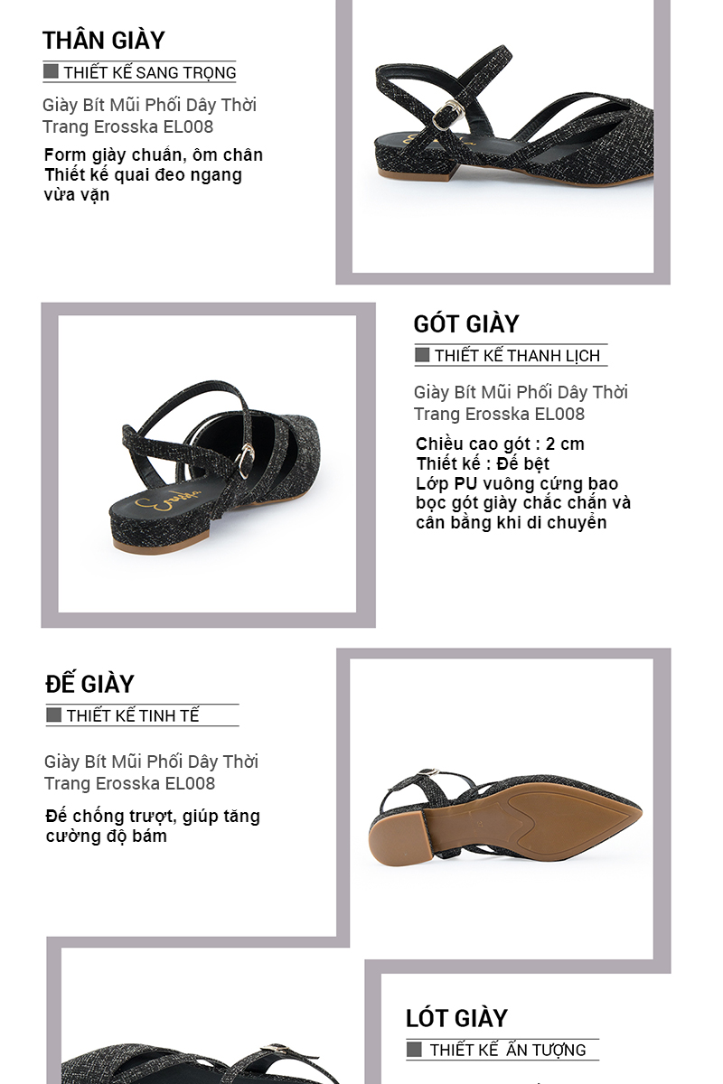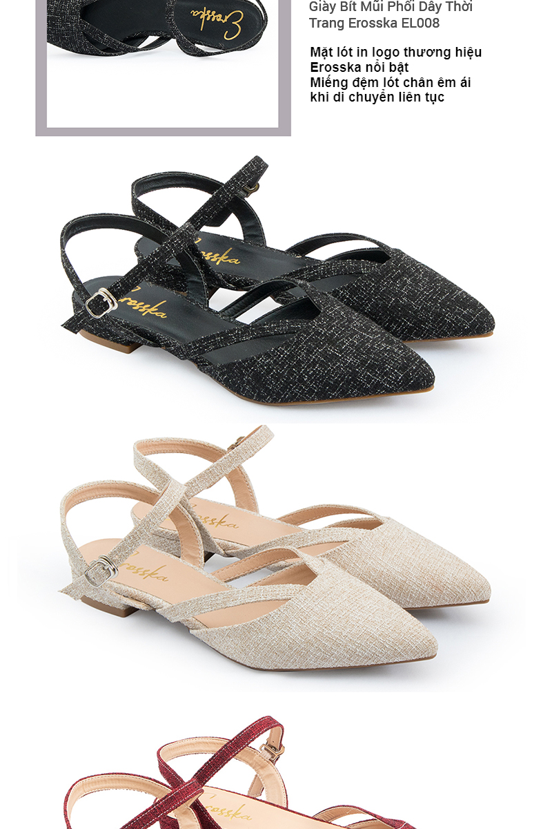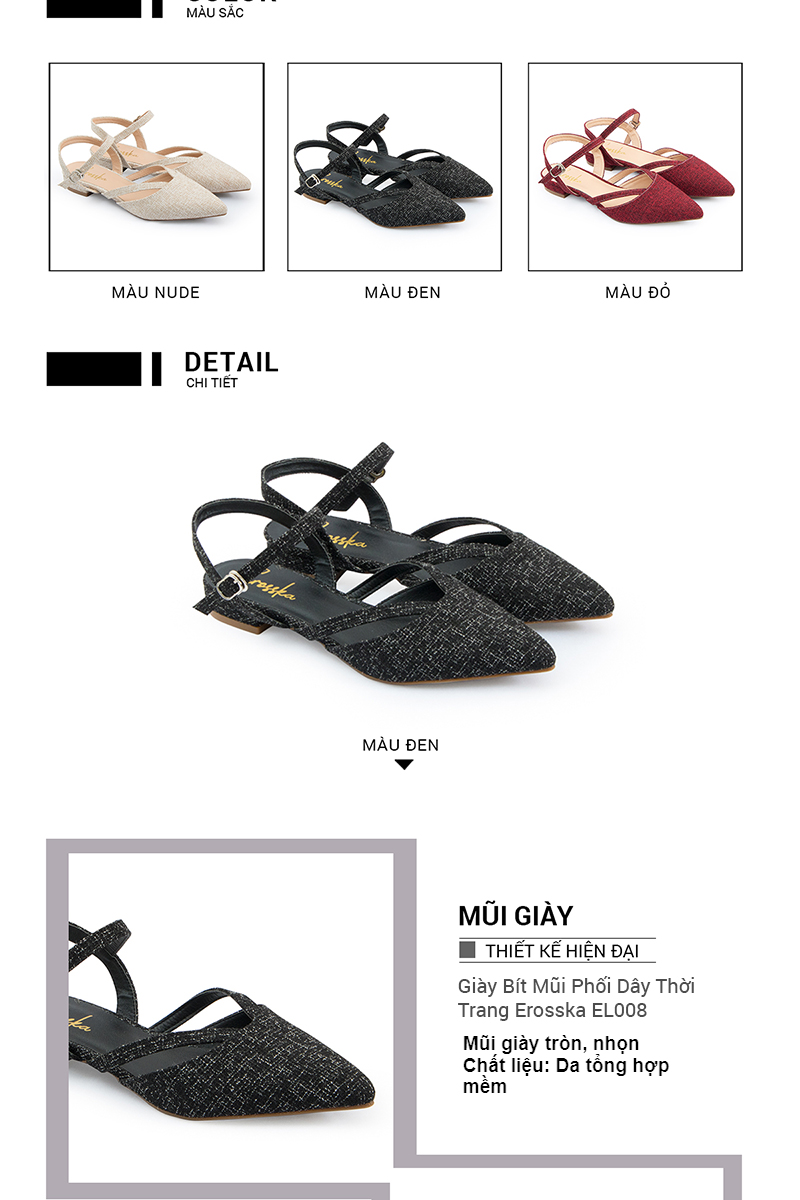 Tên sản phẩm: Giày Nữ, Giày Sandal Nữ Đế Bệt Mũi Nhọn Thời Trang Erosska EL008 ( Màu Đen)