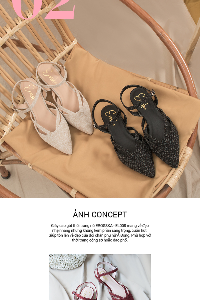 Vẻ đẹp quyến rũ vừa mang nét cá tính, vừa uyển chuyển dịu dàng của những đôi Giày Cao Gót có một sức hút không thể cưỡng lại đối với phái đẹp. Nó đem lại cho phụ nữ cảm giác tự tin,thoát ly bay bổng, nhẹ nhàng. Giày Nữ, Giày Sandal Nữ Đế Bệt Mũi Nhọn Thời Trang Erosska EL008 ( Màu Đen) với thiết kế trẻ trung, đường nét mềm mại, tinh tế sẽ mang đến cho bạn vẻ đẹp hoàn hảo với cảm giác nhẹ nhàng trong từng bước chân.