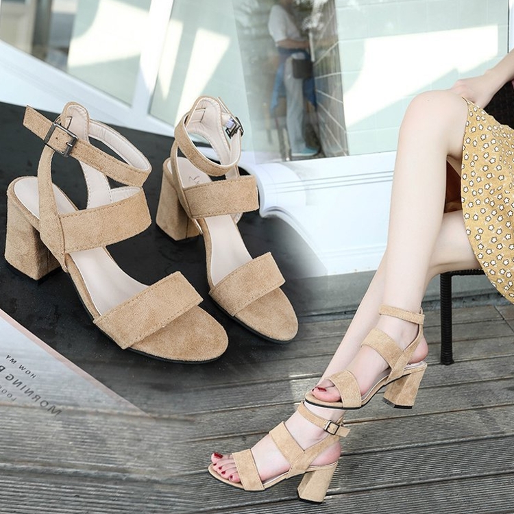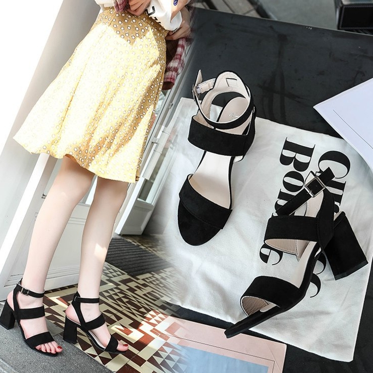 Giày Nữ Hở Mũi Cao Gót Đẹp Da Nhung Bản Lớn Ngang Êm Chân Đế Vuông 7 phân Quai Hậu Phong Cách Thời Trang Hàn Quốc CTS-CG Form Chuẩn