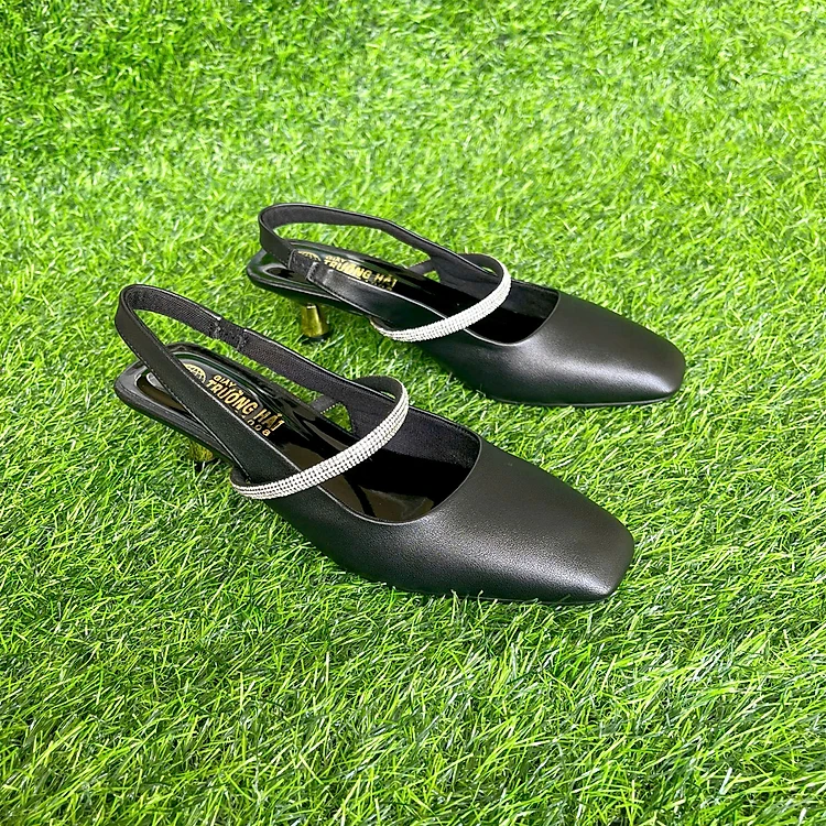 Giày nữ sandal cao gót 3cm da mềm Trường Hải 2 màu đen, kem CG125