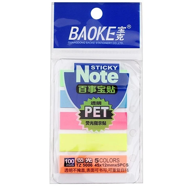 Giấy phân trang / Sticky Note 5 màu Baoke TZ5007/5006, 100 tờ