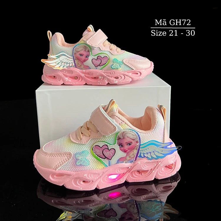 Giày phát sáng cho bé gái có đèn LED họa tiết công chúa Elsa màu hồng thể thao trẻ em nữ 1 2 3 4 5 tuổi NHÍM SHOP GH72