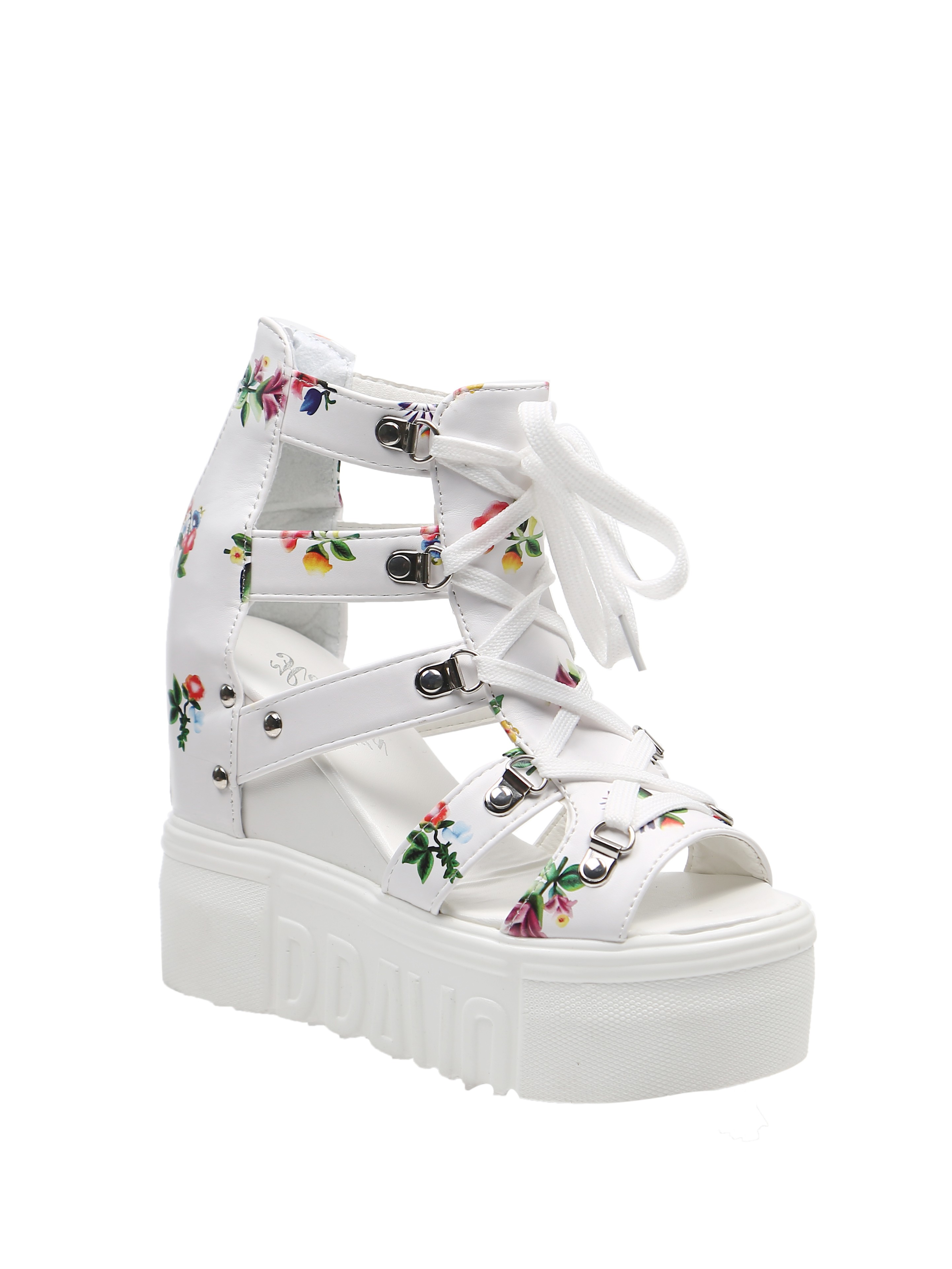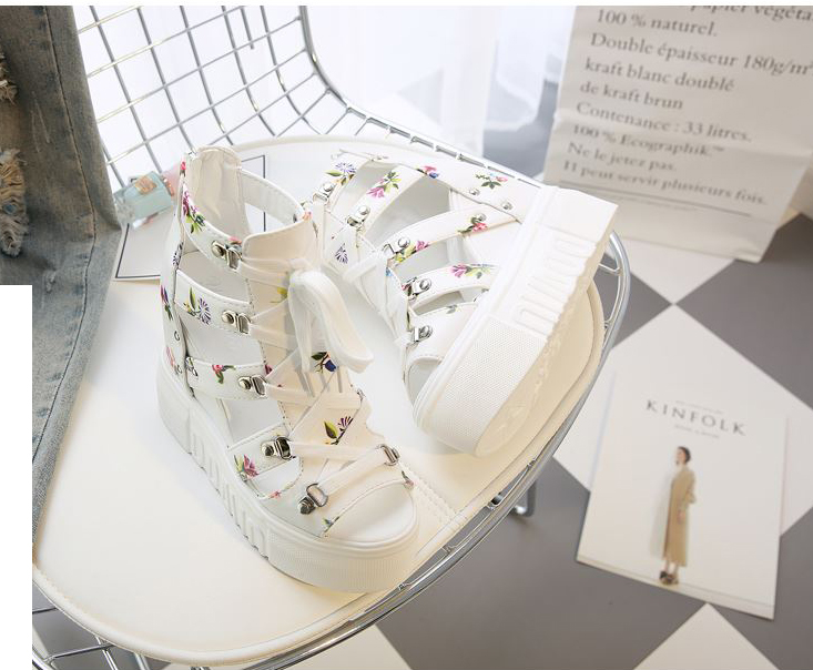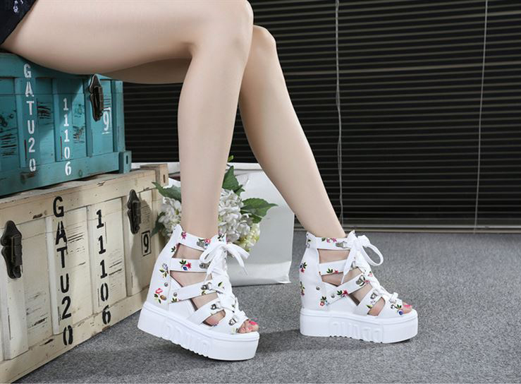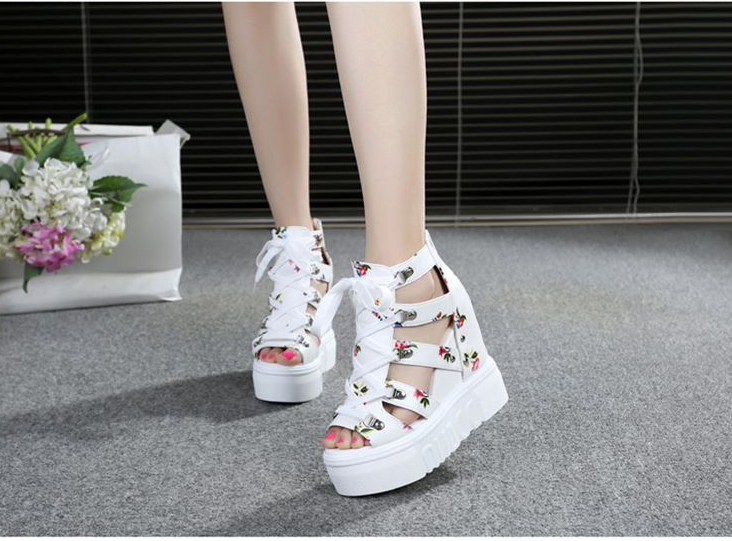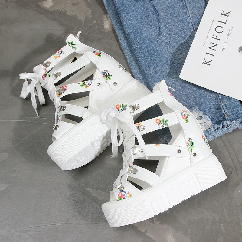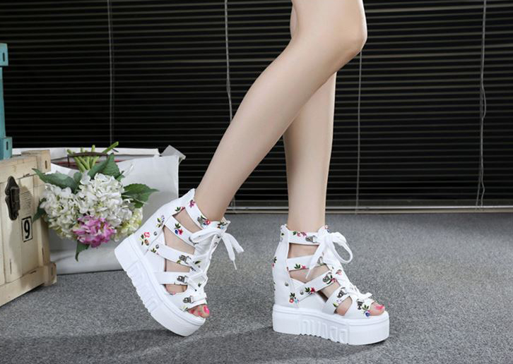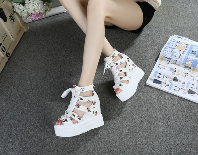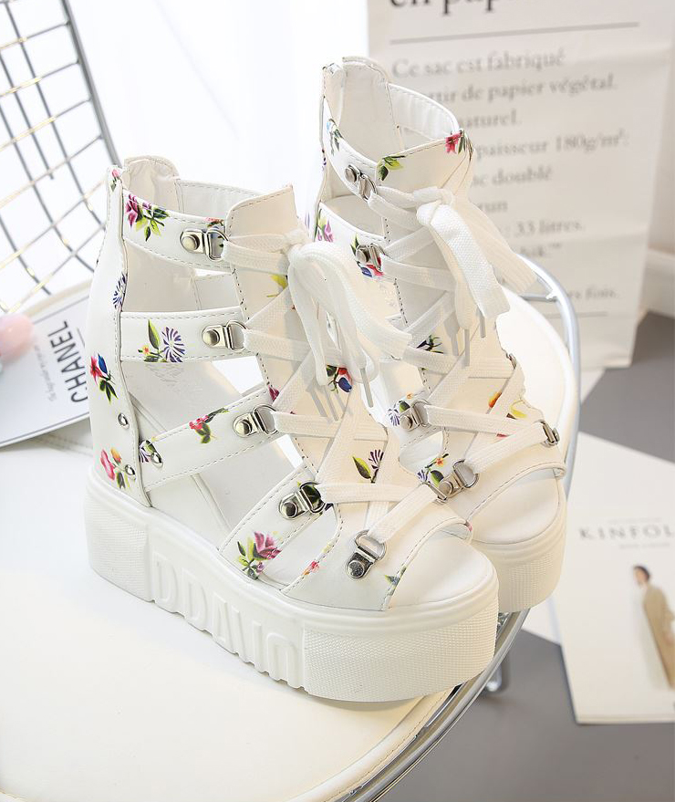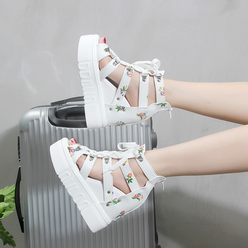Giày Sandal nữ đế xuồng, giày cột dây kèm khóa kéo kiểu dáng thời trang màu trắng S087