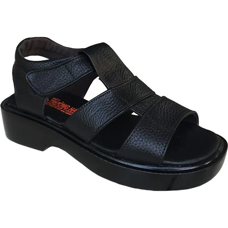 Giày sandal nam Trường Hải da bò thật mềm mại cao 5cm màu đen đế PU siêu nhẹ không trơn trượt chắc chắn HÌNH ẢNH THẬT SD791