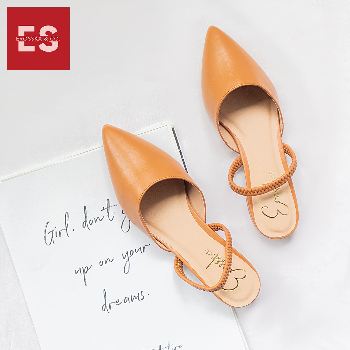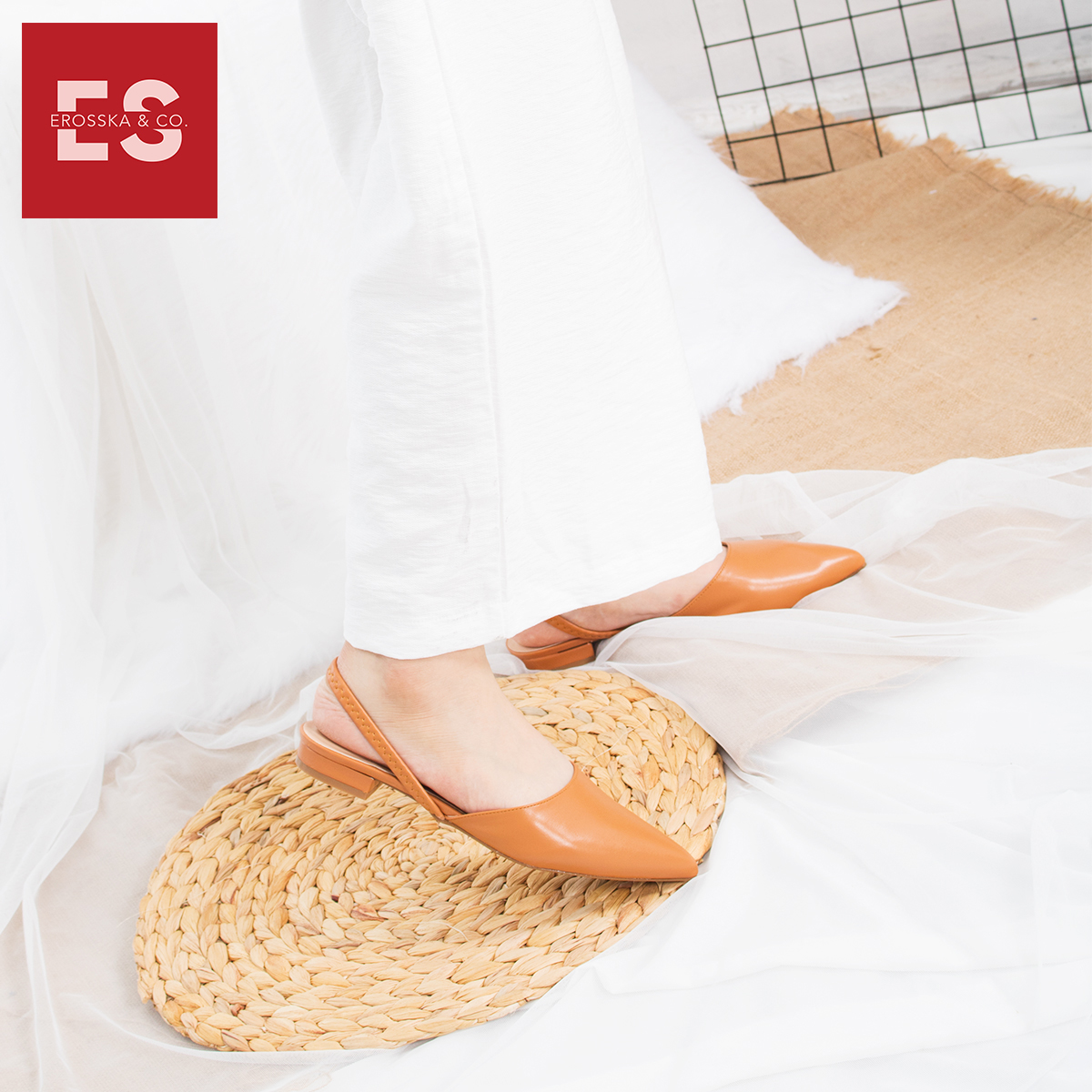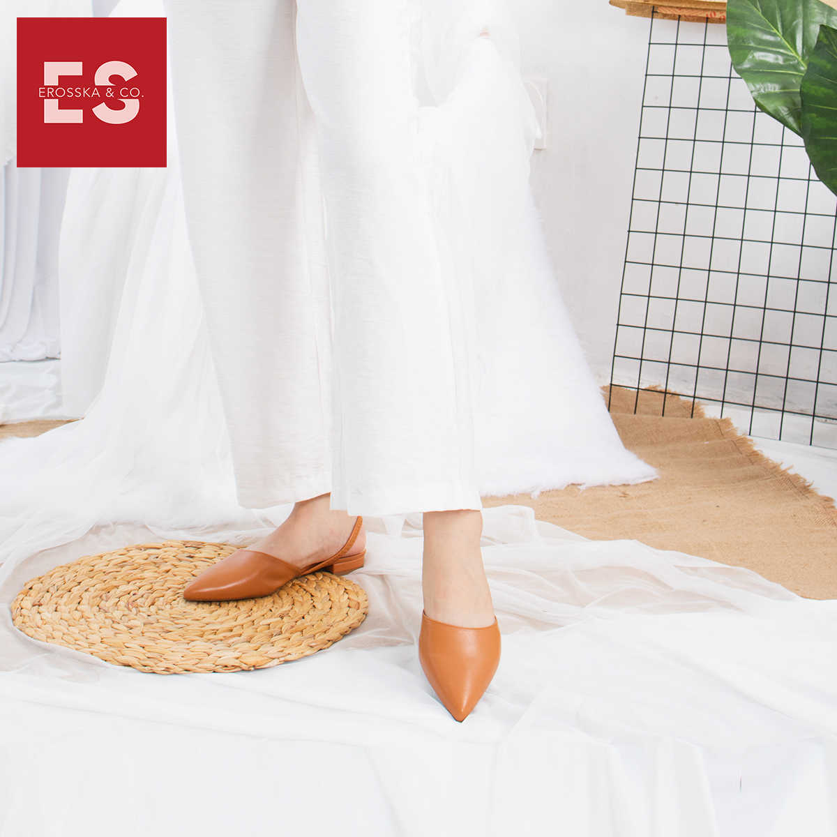 Giày Nữ, Giày Cao Gót Slingback Erosska Mũi Nhọn Cao 2cm Phối Dây Thời Trang Kiểu Dáng Basic - EL002