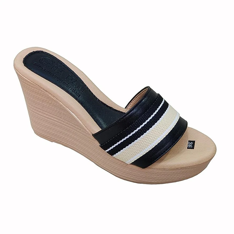 Dép Nữ Quai Ngang Đế Xuồng HÀ NAM Da Bò Thật Cao Cấp 9cm DNU2160