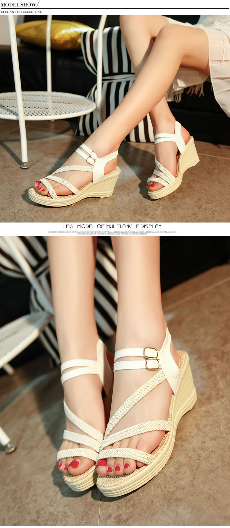 - Kiểu giày sandal đế xuồng cao 7CM hỡ mũi