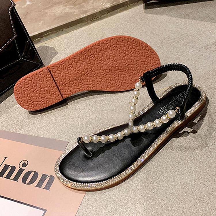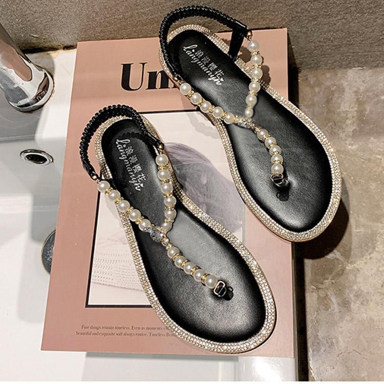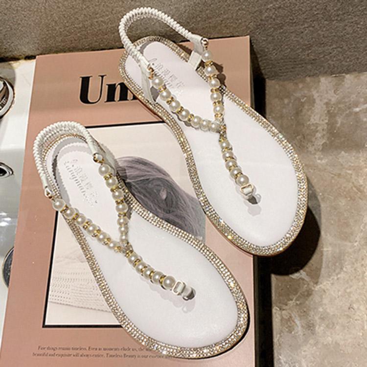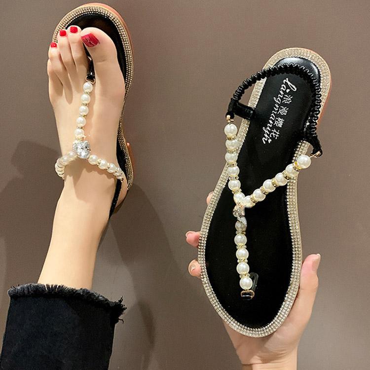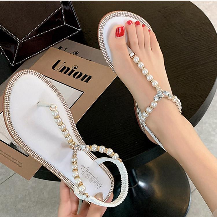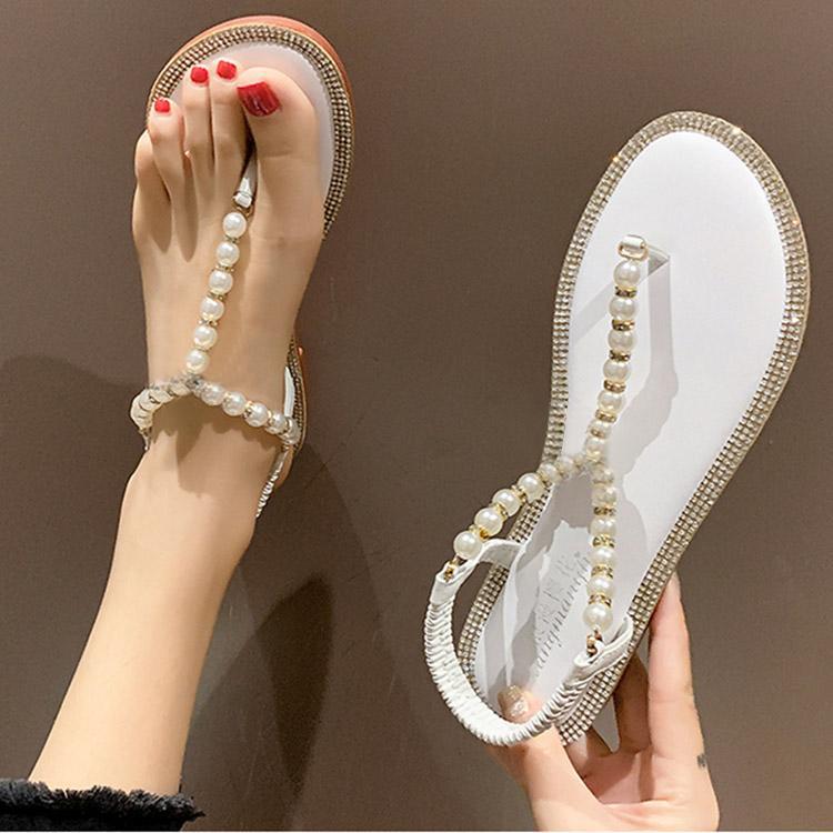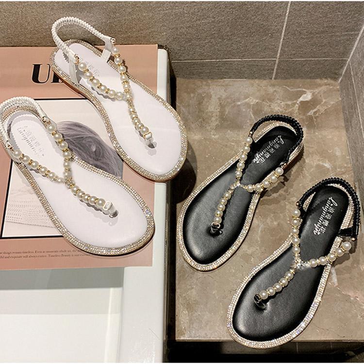 Tên sản phẩm : Giày sandal nữ quai kẹp dây ngọc trai đính nơ đá xinh xắn