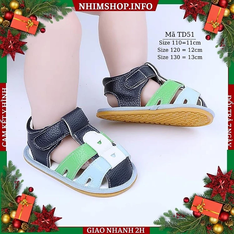 Giày sandal tập đi cho bé đế cao su chống trơn trượt cao cấp da mềm êm chân dáng bít mũi thời trang cho trẻ sơ sinh, trẻ em bé trai bé gái 0 - 18 tháng TD55