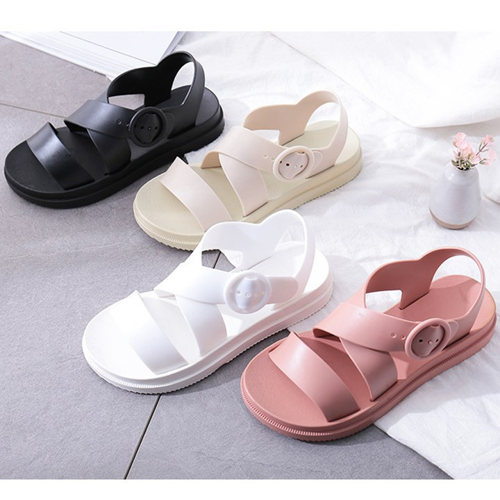 Dép Sandals Cao Su Nữ Với 4 gam màu chủ đạo Đen, Trắng, Hồng, Kem - Dép sandal cá tính kiểu mẫu với ưu điểm thoáng mát, tiện lợi tuyệt đối cùng khả năng “nâng” dáng hoàn hảo cũng là một lựa chọn lý tưởng trong xu hướng sandal hè thu 2019 dành cho các tín đồ ưa chuộng giày, dép không bao giờ lỗi mốt.