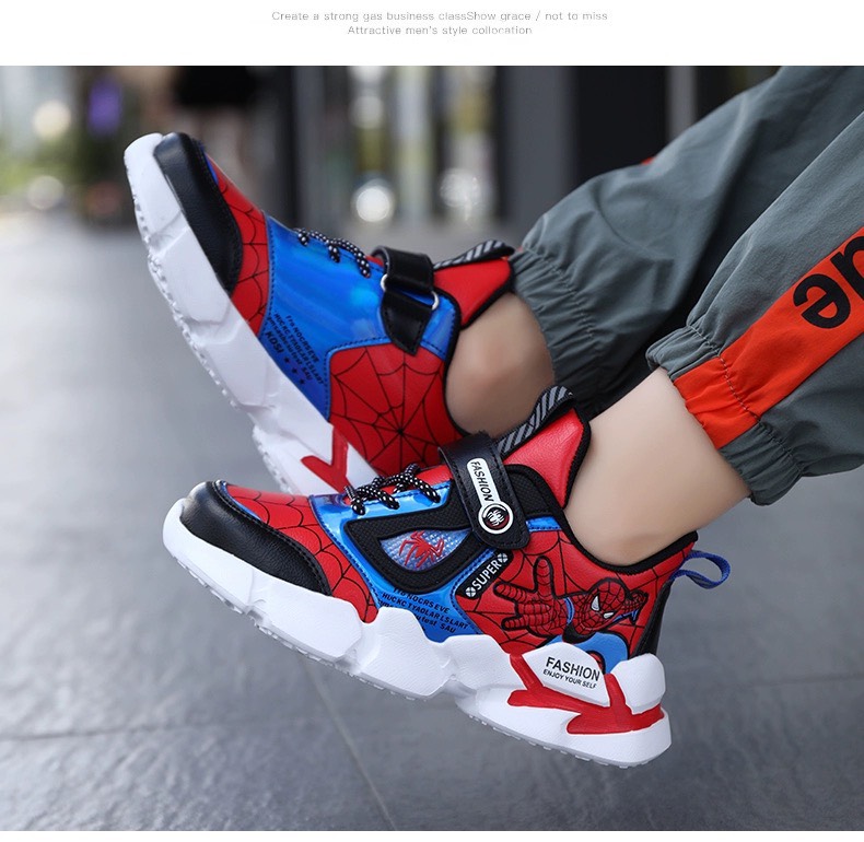 Giày siêu nhân - Spiderman cho bé trai từ 3 đến 15 tuổi được thiết kế bởi chất liệu da anti đàn hồi, tạo sự thoải mái và mềm mại cho đôi chân bé. Đặc biệt, lớp đế Eva nhẹ, êm có độ đàn hồi chống trơn trượt cực tốt, giúp các bé dễ dàng vận động và chạy nảy nô đùa thoải mái. Với kiểu dáng thể thao thiết kế tinh tế, Spiderman độc đáo, giày GE73 sẽ là lựa chọn tối ưu cho các bé yêu thích thể thao và fan của các nhân vật siêu nhân, spiderman siêu đỉnh.