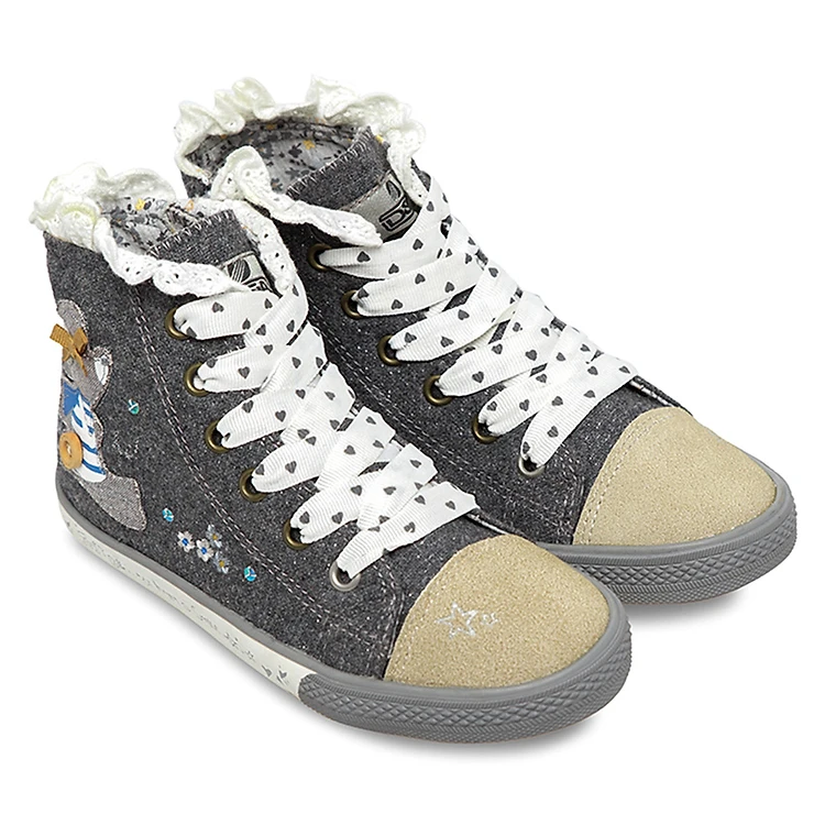 Giày Sneaker Bé Gái Cổ Cao Viền Ren D&A BG1510 – Đen được viền ren tinh xảo tạo điểm nhấn khác biệt và duyên dáng. Giày có cổ cao thật đẹp mắt, bảo vệ chân tối ưu. Với màu đen chủ đạo, giày sẽ mang đến cho bé gái vẻ cá tính, mạnh mẽ. Giày may từ vải dày dặn cho độ bền chắc tối ưu. Mũi giày tròn kết hợp cùng form ôm vừa vặn, không làm đau chân bé khi đi.