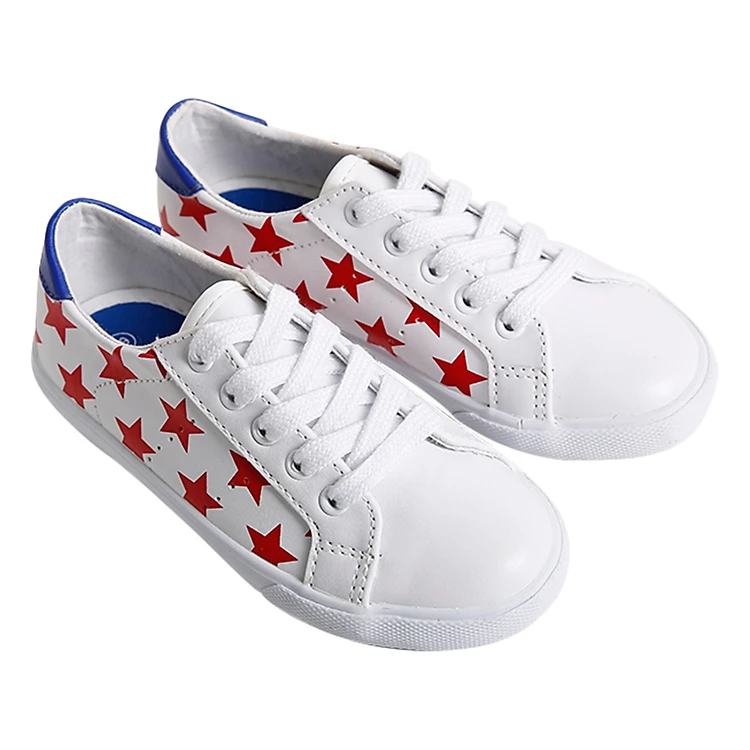 - Giày Sneaker Buộc Dây Bé Gái Urban UG1609W – Trắng In Sao được thiết kế đẹp mắt với họa tiết ngôi sao màu đỏ nổi bật trên nền giày màu trắng, tạo nét đáng yêu cho bé khi mang.
