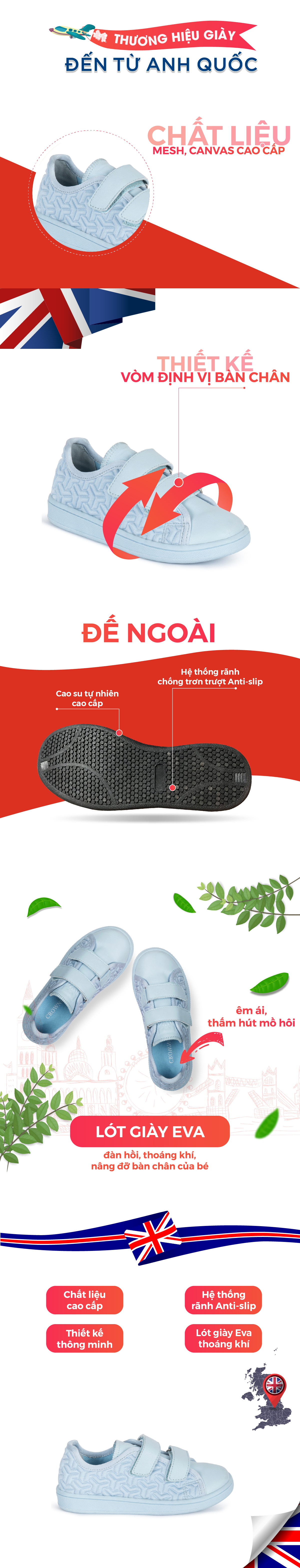 - [ĐẾ GIÀY]: Từng đường may vô cùng tỉ mỉ và chính xác cho trải nghiệm sản phẩm luôn tuyệt hảo. Đế từ chất liệu cao su nguyên chất, chống trơn trượt, giúp bé thỏa sức vận động trên mọi địa hình.