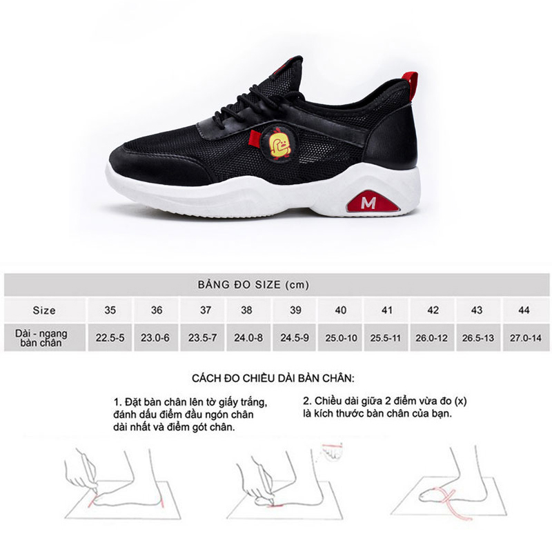 • Đế giày bằng cao su nhẹ êm chân, cao 3,5CM cùng thiết kế CHỐNG TRƠN TRƯỢT AN TOÀN.