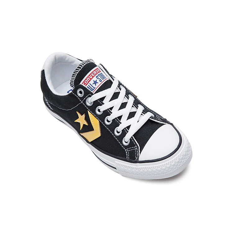 Giày Sneakers Nam Converse 131841C - Đen thiết kế kiểu giày cổ ngắn và thắt dây truyền thống vừa thoải mái vừa dễ phối đồ. Hai bên hông giày in biểu tượng ngôi sao của Converse với màu vàng nổi bật. Form giày ôm vừa vặn, thoải mái với đôi chân khi đi.