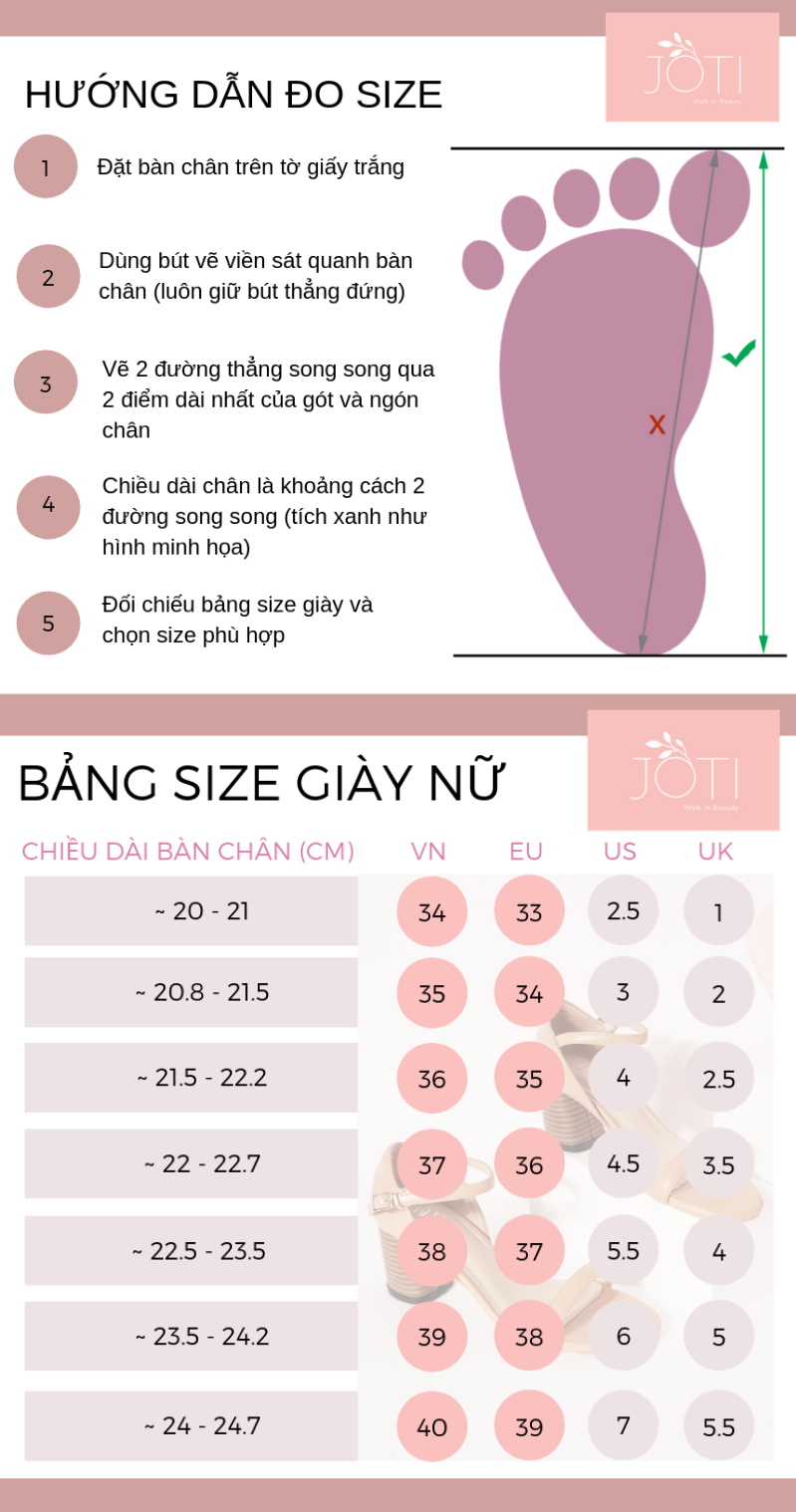 Mẫu giày này form size theo chuẩn EU (Châu Âu). Mời bạn tham khảo và chọn size theo hướng dẫn.