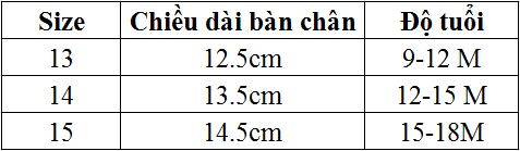 Cha mẹ có thể chọn cỡ giày cho bé yêu với gợi ý dưới đây: