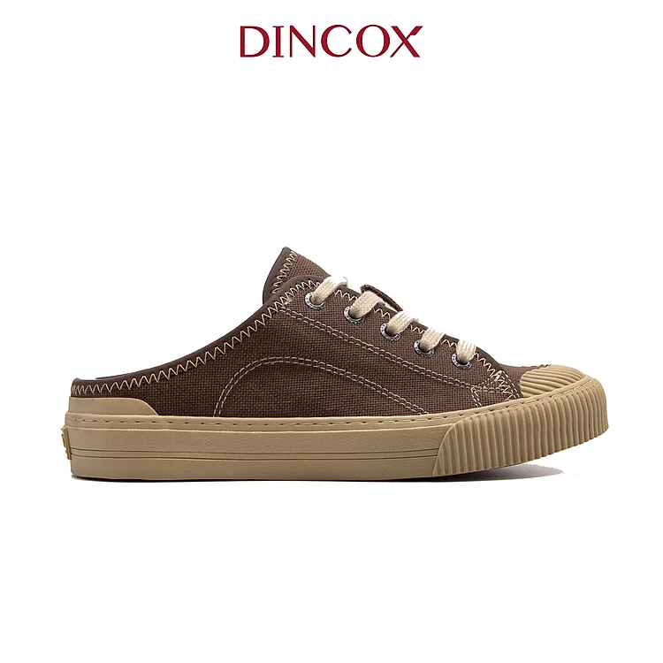 Giày Sục Đạp Gót Mules Vải Sneaker Unisex Tăng Chiều Cao 4cm DINCOX E10 CHOCO MILK