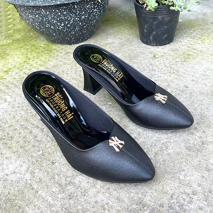Giày Sục nữ cao gót 7cm Trường Hải da mềm mại 2 màu đen, nâu S116