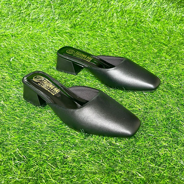 Giày sục nữ gót vuông 3cm Trường Hải mũi vuông da mềm SN155