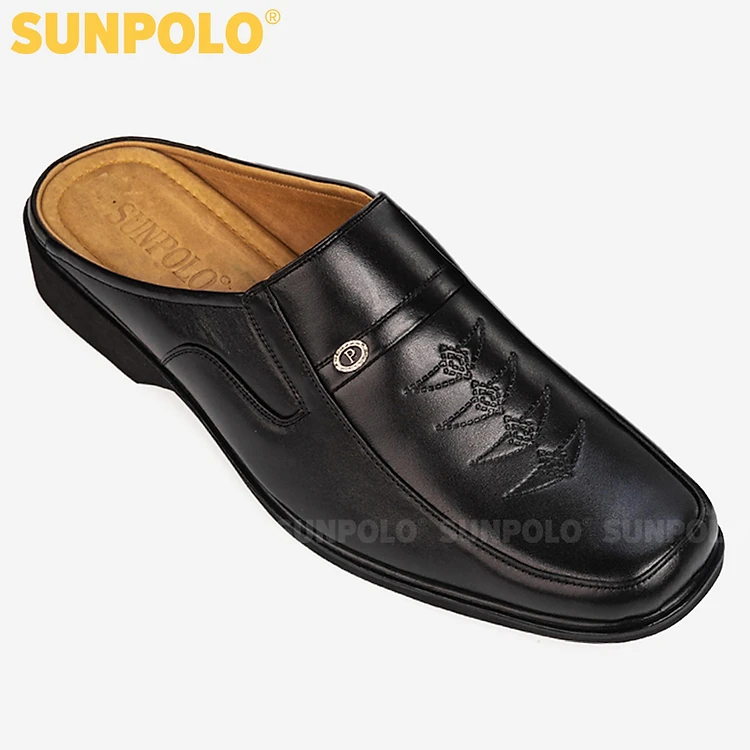 Giày Sục Sapo Bít Mũi Nam Da Bò Cao Cấp SUNPOLO SPO008 (Đen)