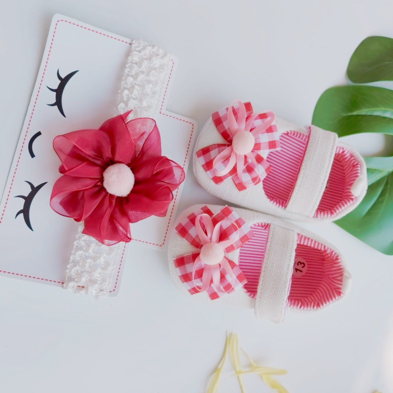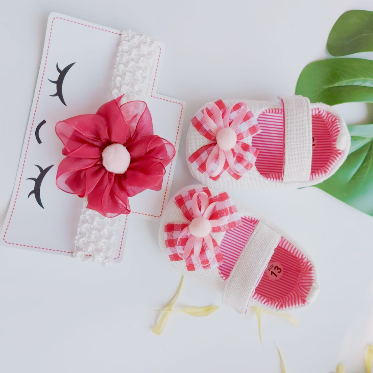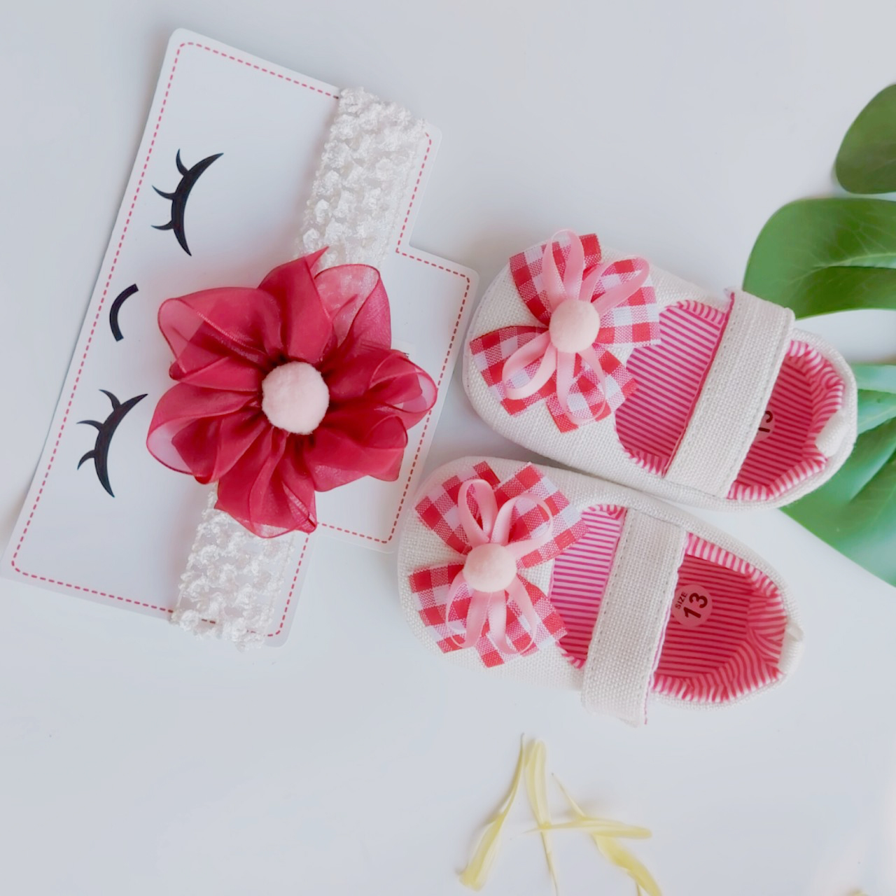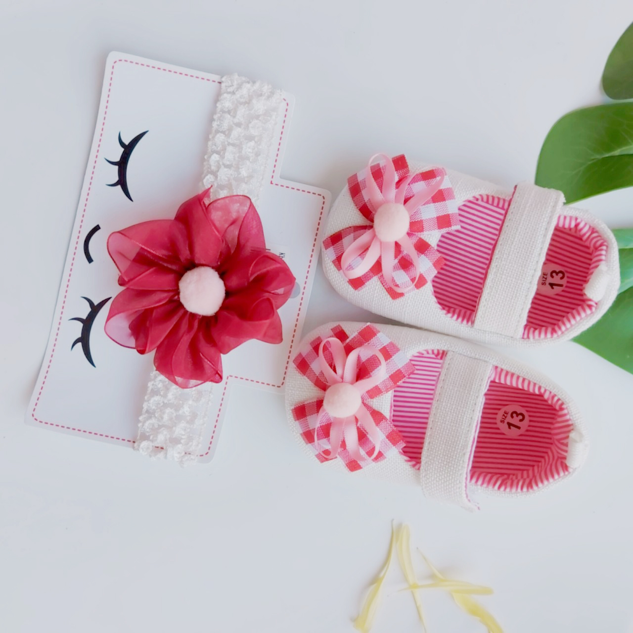 Giày Tập Đi Cho Bé Gái 0-15 tháng - TẶNG KÈM BĂNG ĐÔ- Màu trắng, băng đô đỏ