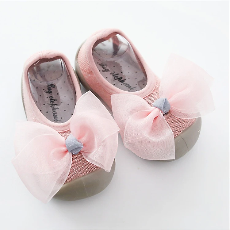 Giày Tập Đi Nơ Xinh Có Đế Cao Su Ma Sát Chống Trơn Trượt (Size 12 - Bé 6-9 Tháng) sẽ thật đáng yêu khi được đeo trên chân bé.