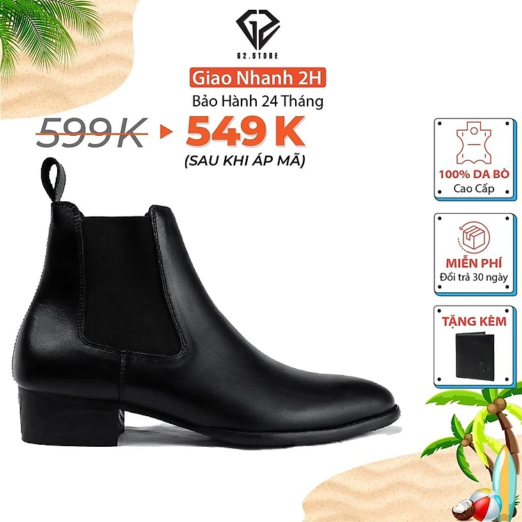 Giày tây nam chelsea boot từ da bò tấm cao cấp độn đế tăng chiều cao, Chelsea boot nam G2 kiểu giày công sở đứng font