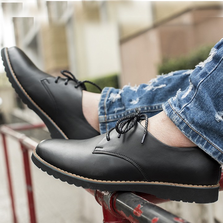 KIỂU DÁNG: Sản phẩm thiết kế đơn giản, lịch lãm, không cầu kỳ, lên chân là đẹp Mũi giày bò tròn, thiết kế dây buộc ôm sát chân, thoải mái khi sử dụng.