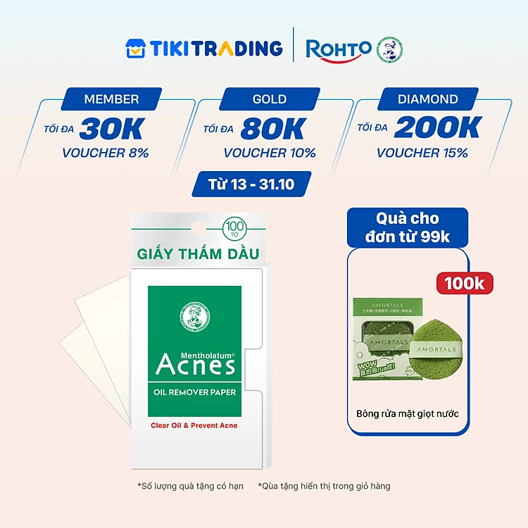 Giấy thấm dầu kiểm soát nhờn, ngừa mụn Acnes Oil Remover Paper 100 tờ