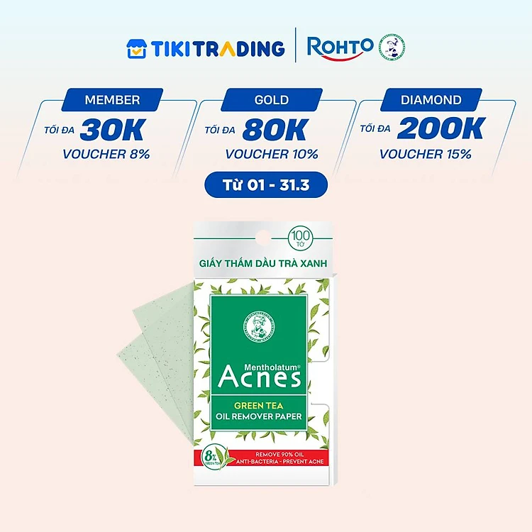 Giấy thấm dầu trà xanh Acnes Oil Remover Paper Green Tea 100 tờ