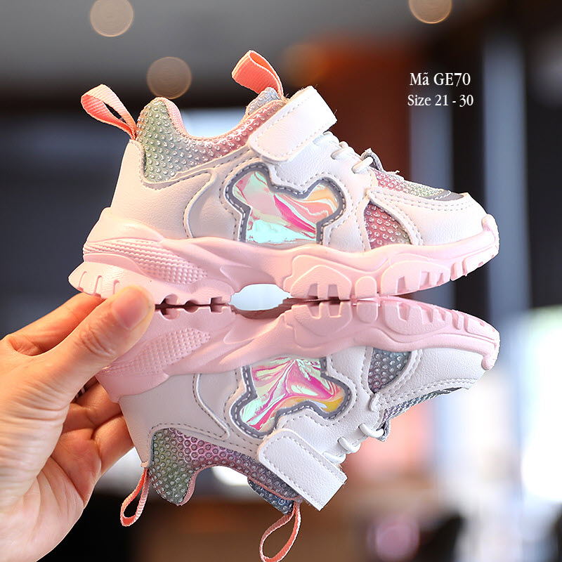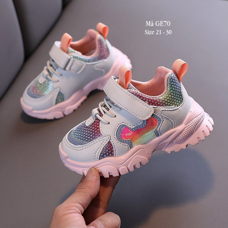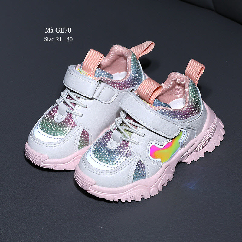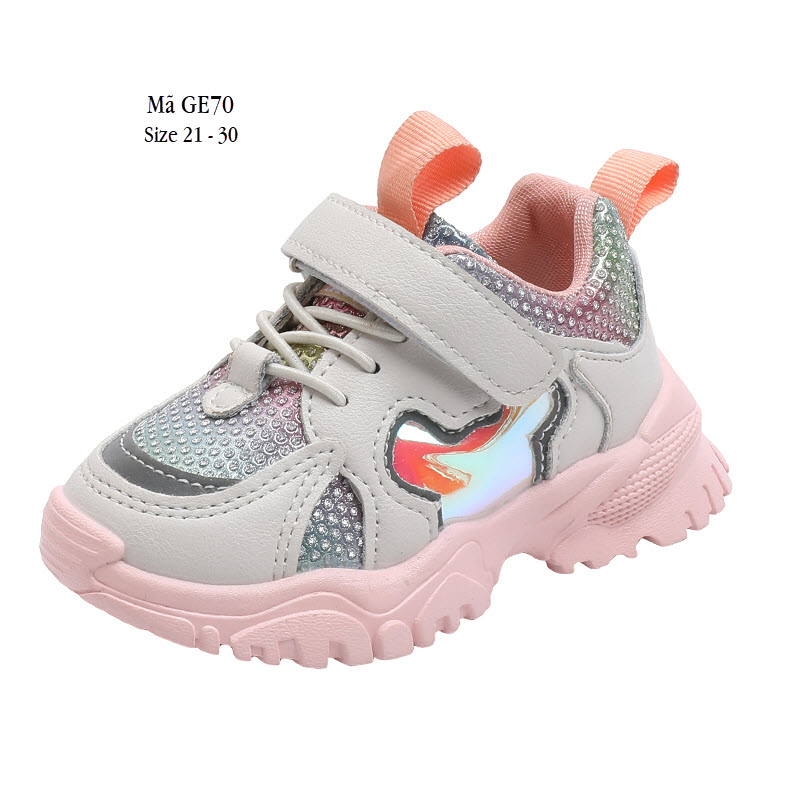 Giày thể thao bé gái GE70 được làm từ chất da PU mềm mại, đế cao su tính chế có độ nhẹ bám và ma sát cao. Đặc biệt, kiểu dáng thời trang xu hướng trend của thu đông năm nay, GE70 đã và đang được đón nhận là mẫu giày trẻ em đáng sắm cho bé đi học, đi chơi hay tiệc tù giày size chuẩn, phù hợp cho các bé độ tuổi 1 - 5 tuổi. Đồng thời, kiểu dán tiện dụng giúp các bé dễ dàng tháo sỏ linh hoạt dù ở nhà, ở trường hay bất cứ nơi đâu.