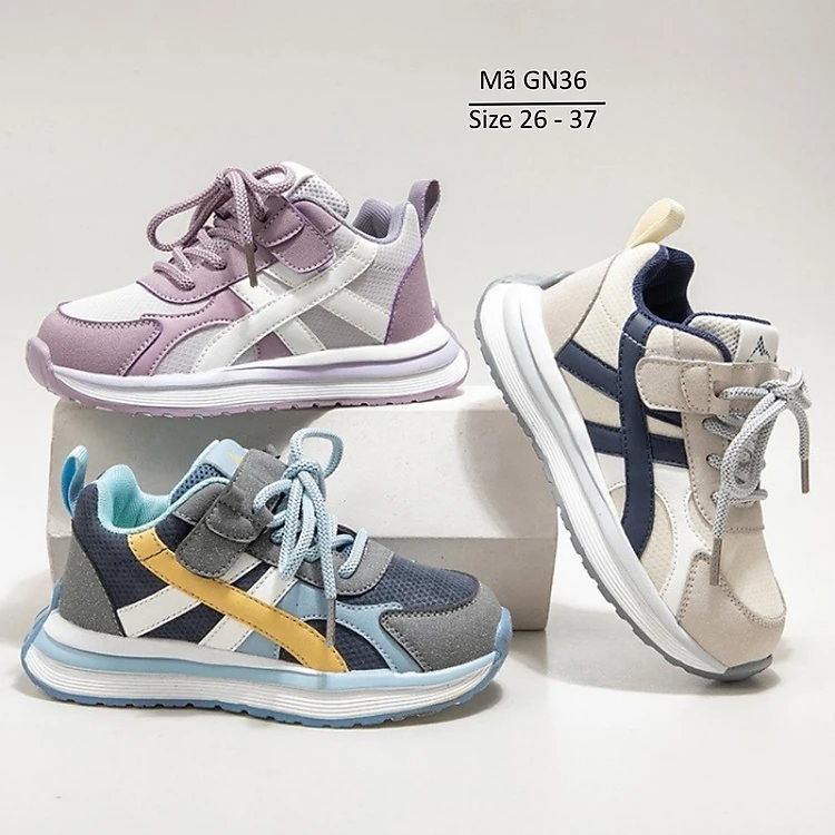Giày thể thao bé trai bé gái 3 - 12 tuổi quai dán kết hơp cột dây năng động cá tính đi học đi chơi NHÍM SHOP GN36