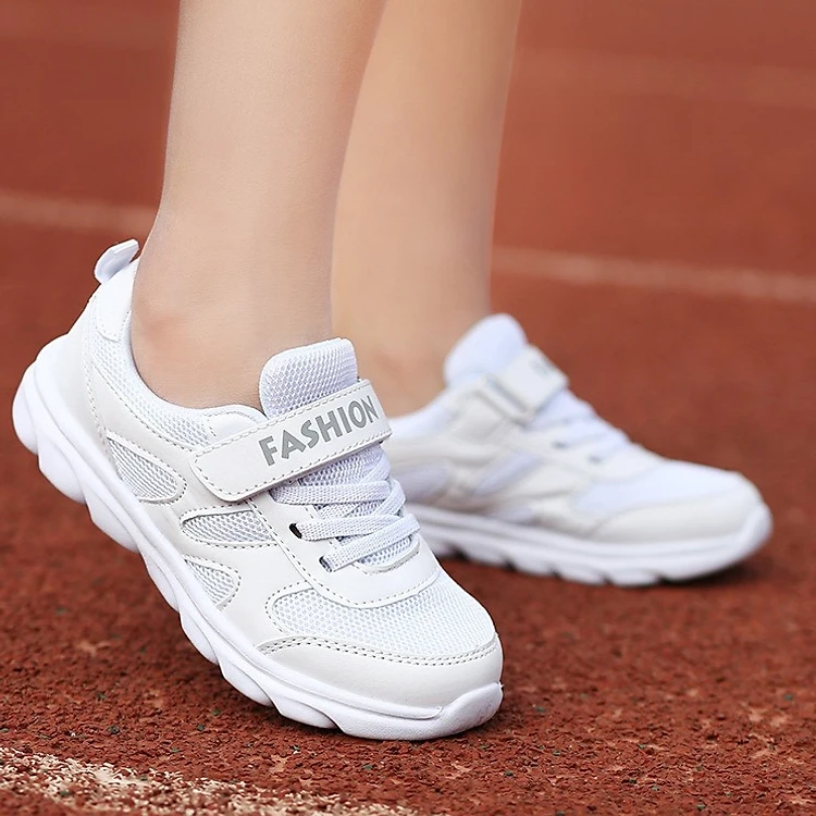 Giày thể thao bé trai bé gái 4 - 15 tuổi GE57 mang thiết kế khoẻ khoắn, năng động. Sản phẩm được làm từ chất liệu bền chắc, có trọng lượng nhẹ, giúp bảo vệ đôi chân và mang lại cảm giác thoải mái cho bé khi đi. Đế EVA siêu nhẹ có độ bám, khả năng chịu lực và độ ma sát tốt khi di chuyển. Màu trắng tinh khôi không kém phần sang và chất, kiểu dán tiện dụng giúp bé dễ dàng tháo sỏ. Giày với dòng size đa dạng phù hợp cho bé trai từ 4 đến 15 tuổi đi học đi chơi, chạy bộ hoặc tập thể