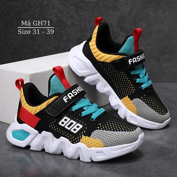 Giày thể thao bé trai 6 - 12 tuổi siêu nhẹ kháng khuẩn màu đen vàng thời trang phù hợp cho trẻ em nam học sinh đi học chơi bóng chuyền bóng rổ du lịch năng động cá tính phong cách Hàn Quốc Nhím Shop GH71