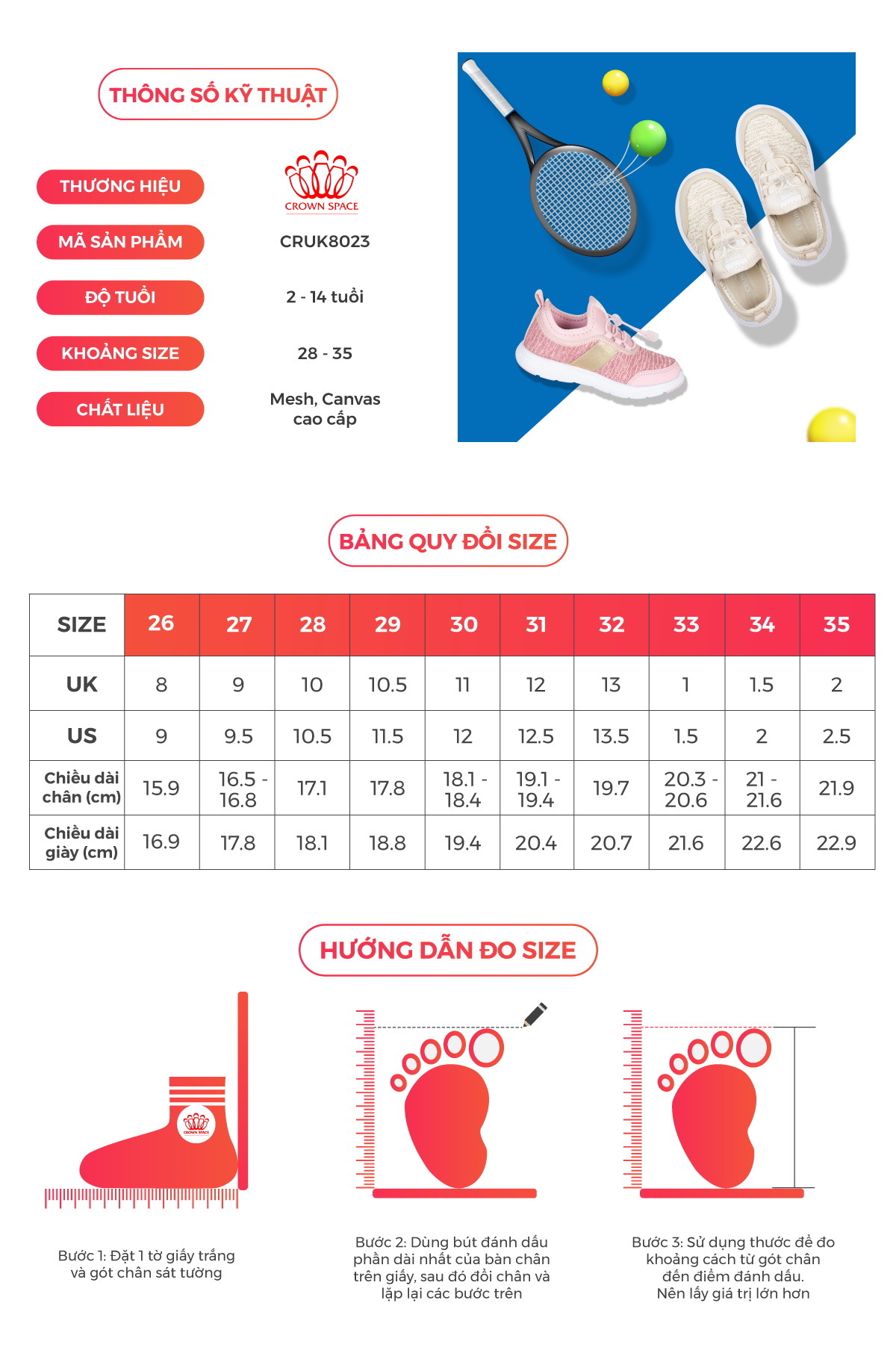 Giày Thể Thao Bé Trai Bé Gái Đi Học Siêu Nhẹ Crown Space UK Sport Shoes CRUK8023 Cho Trẻ em Cao Cấp Êm Thoáng Size 28-35/2-14 Tuổi