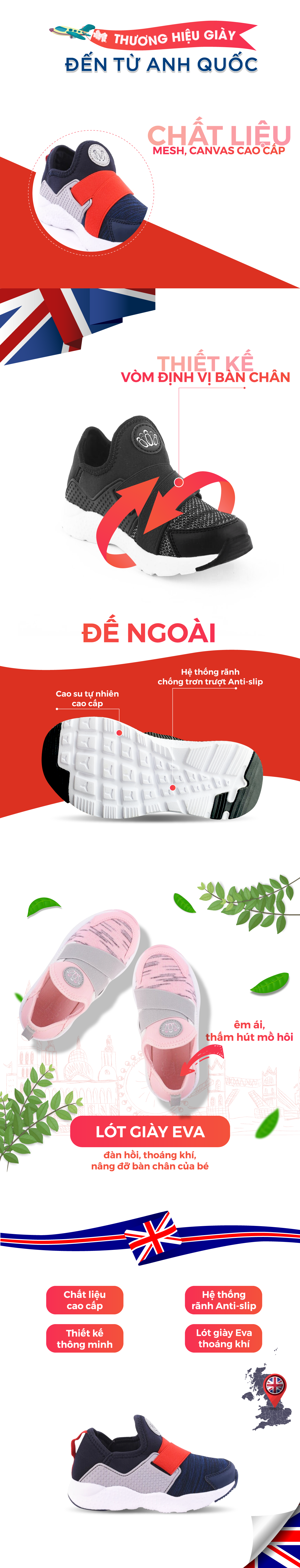 - [ĐẾ GIÀY]: Từng đường may vô cùng tỉ mỉ và chính xác cho trải nghiệm sản phẩm luôn tuyệt hảo. Đế từ chất liệu cao su nguyên chất, chống trơn trượt, giúp bé thỏa sức vận động trên mọi địa hình.