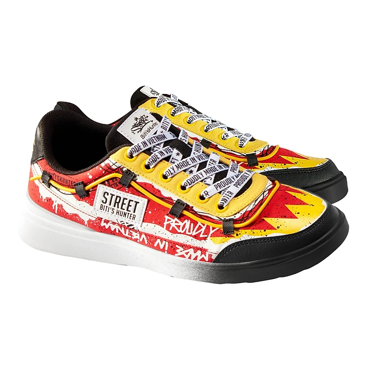 - Giày Thể Thao Nữ Biti's Hunter Street VietMax Culture DSWH02502DOO - #DNA OG Với cảm hứng đầy tự hào từ đường phố Việt Nam, Biti’s Hunter Street là dòng sản phẩm mới nhất từ Biti's với công nghệ LiteTraction cho phép giày Biti’s Hunter Street đạt đến độ nhẹ tối ưu 300g/chiếc đồng thời đạt độ ma sát cao, vững chắc trong từng bước chân và thiết kế cải tiến sử dụng Vải Canvas 10OZ công nghệ đan 2 sợi nhẹ thoáng nhưng vẫn bền chặt, giữ đúng form dáng sau thời gian dài sử dụng.