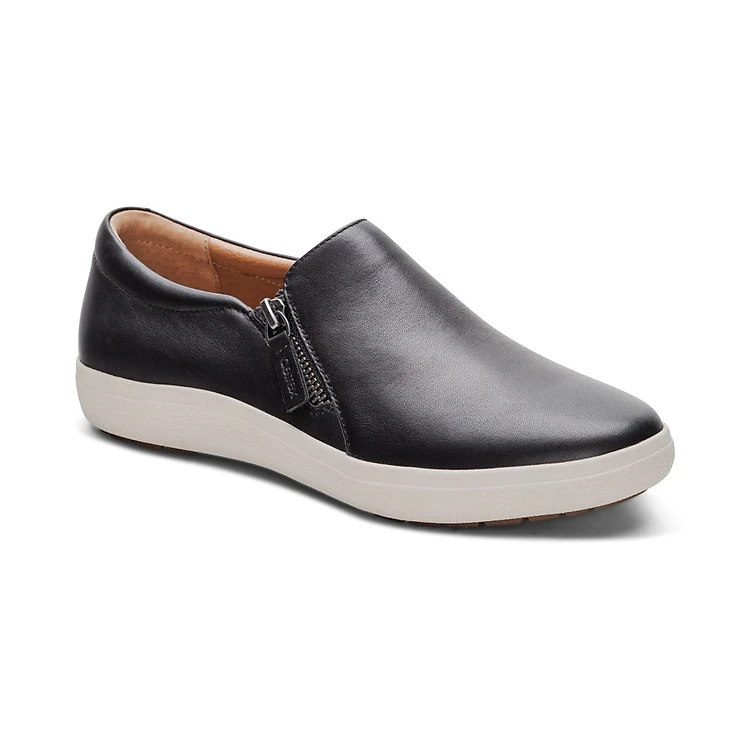Giày thể thao sức khoẻ nữ Aetrex Jenna Black - Giày lười da đế đệm