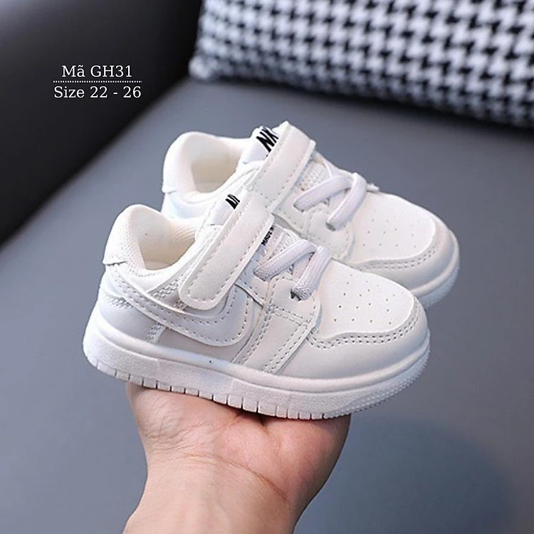 Giày thể thao trẻ em màu trắng da mềm êm thời trang cho bé trai bé gái 1, 2, 3 tuổi khỏe khoắn năng động đi học đi chơi NHÍM SHOP GH31