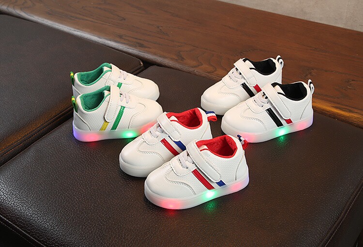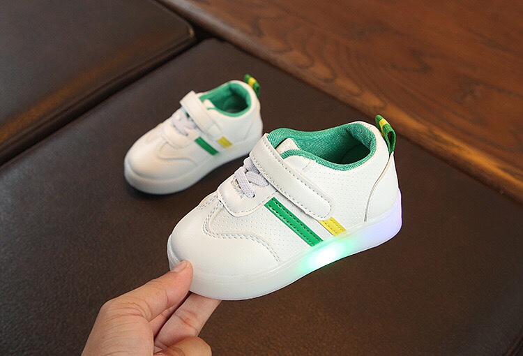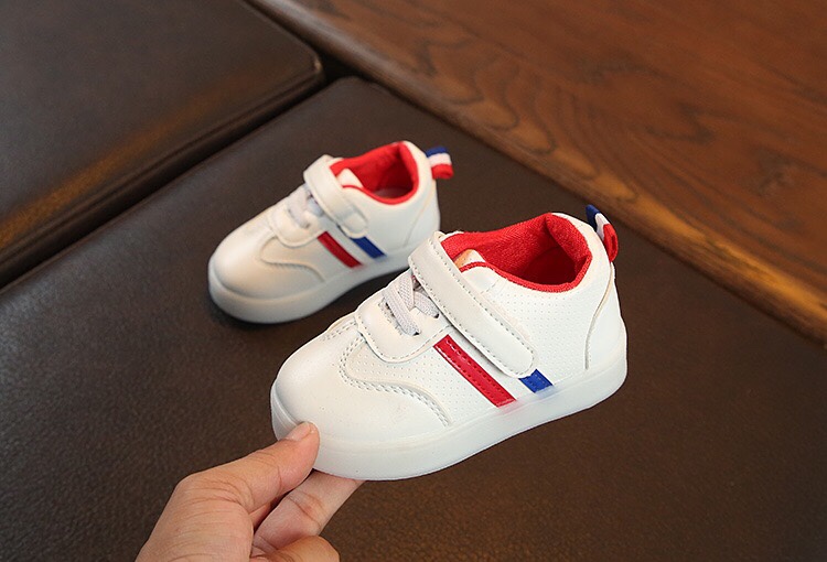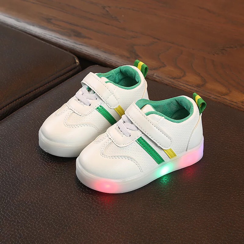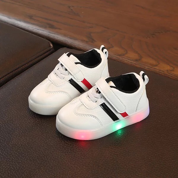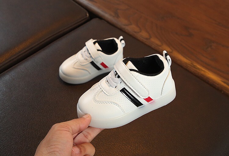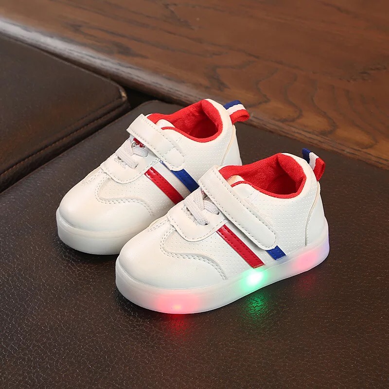 Giày thể thao có đèn Led với thiết kế 2 sọc màu sắc trên nền giày trắng vô cùng trẻ trung và sành điệu. Nếu tủ giày của bé mà chưa có đôi này thì quả là thiệt thòi đó ạ.