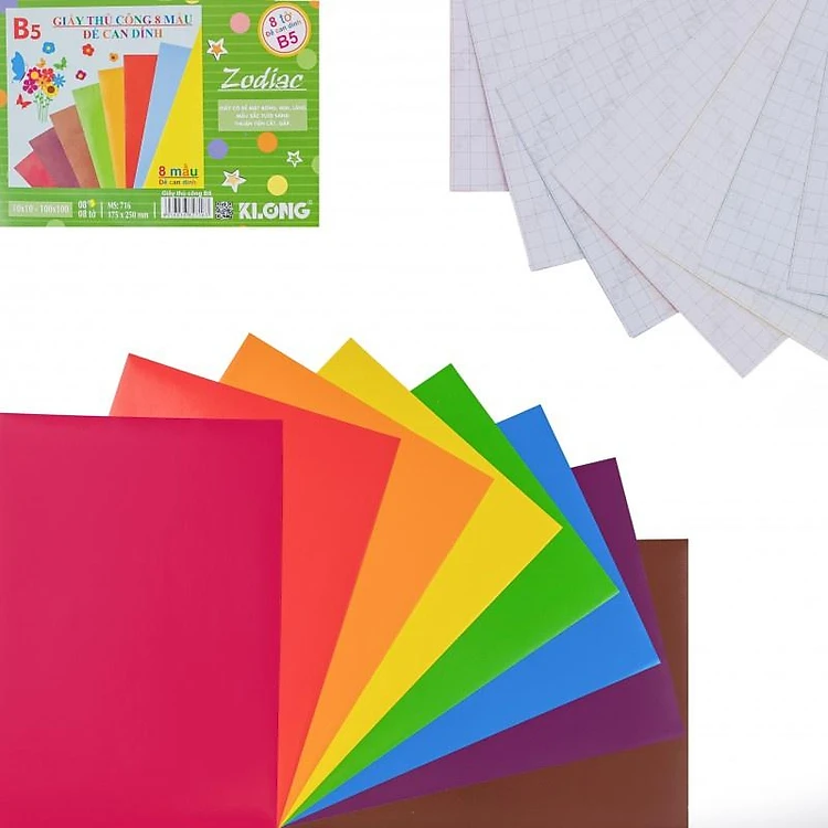 Giấy thủ công dính decan B5 8 màu; MS: 716