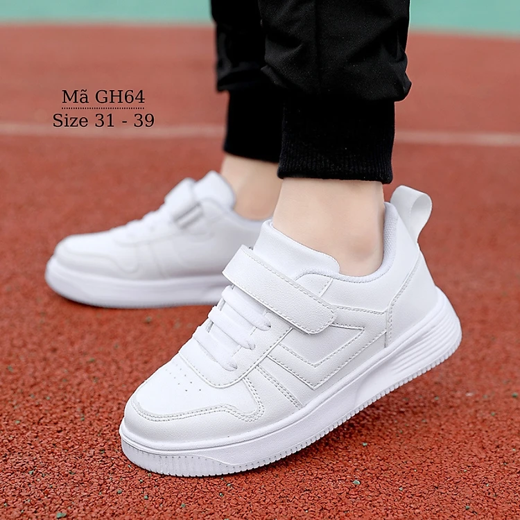 Giày trắng cho bé trai bé gái 6 - 15 tuổi học sinh tiểu trung học da mềm siêu nhẹ dáng thể thao năng khỏe khoắn và năng động GH64