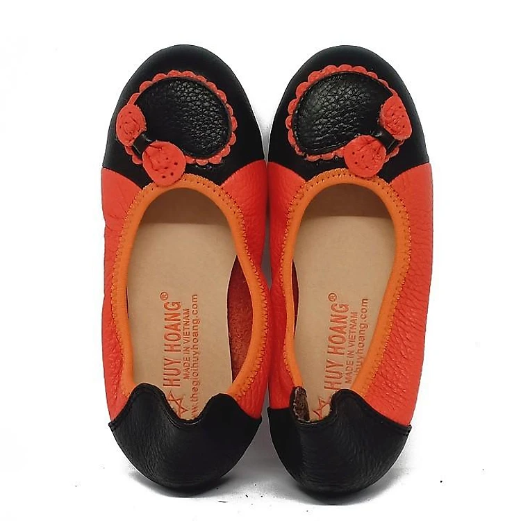 Giày trẻ em nữ Huy Hoàng da bò màu cam phối đen HT7864